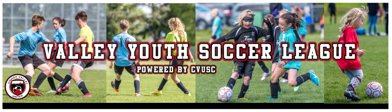 We have two recreational Valley Youth Soccer League seasons - September to November and April to June. Children are divided up into divisions according to age with all children playing with same-aged children. If numbers require, we will combine age groups in order to make an appropriate schedule. Games are all played on Saturdays. Fields and times are set prior to the start of the season.